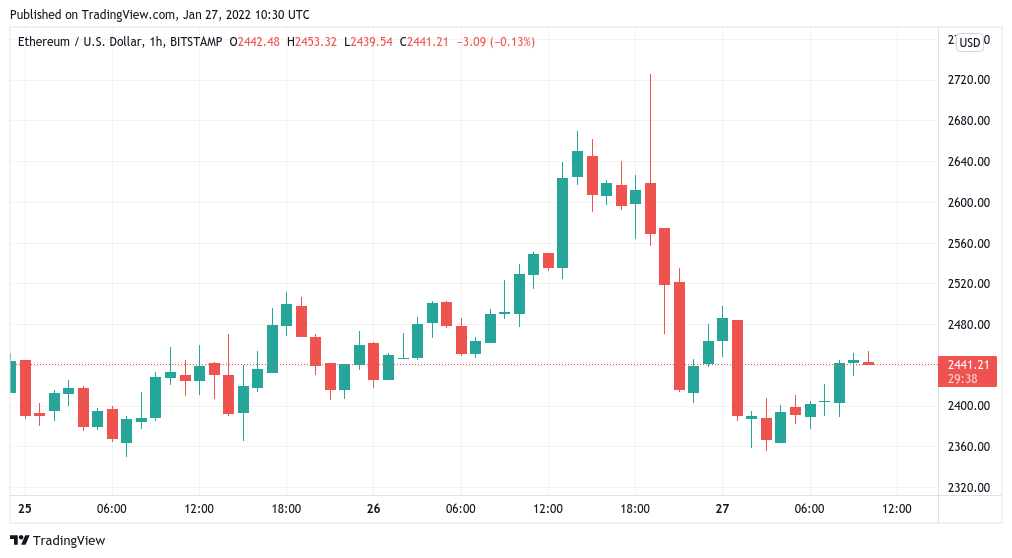 آلت کوینها، بیت کوین را به صورت پله ای دنبال کردند تا چندین درصد در روز کاهش پیدا کردند و یک بار دیگر به ضرر کلی هفته اضافه شود. اتر (ETH) به کمتر از 2500 دلار سقوط کرد، اما همچنان در 7 روز گذشته 22 درصد کاهش یافت.
