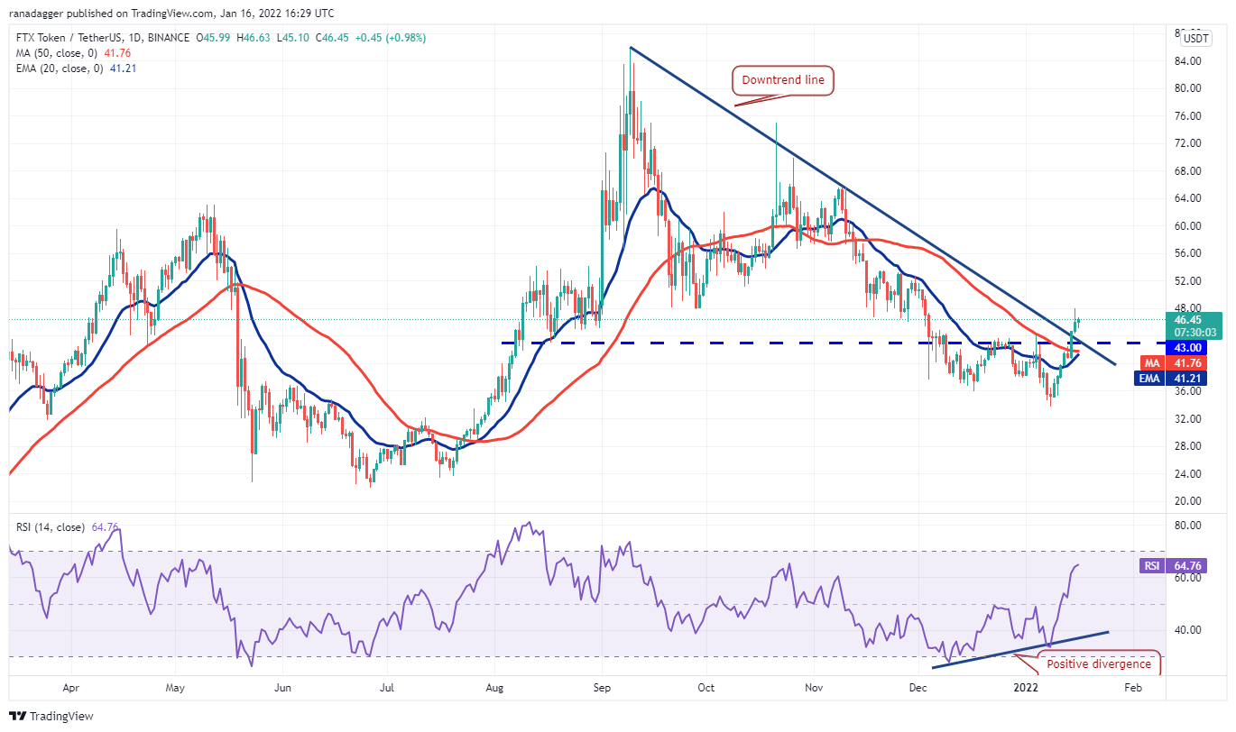 توکن FTX (FTT) در چند هفته گذشته در مرحله اصلاحی سنگین بوده است. گاوها قیمت را به بالای خط روند نزولی در 14 ژانویه رساندند که نشانگر تغییر احتمالی روند نزولی به روند صعودی بود.