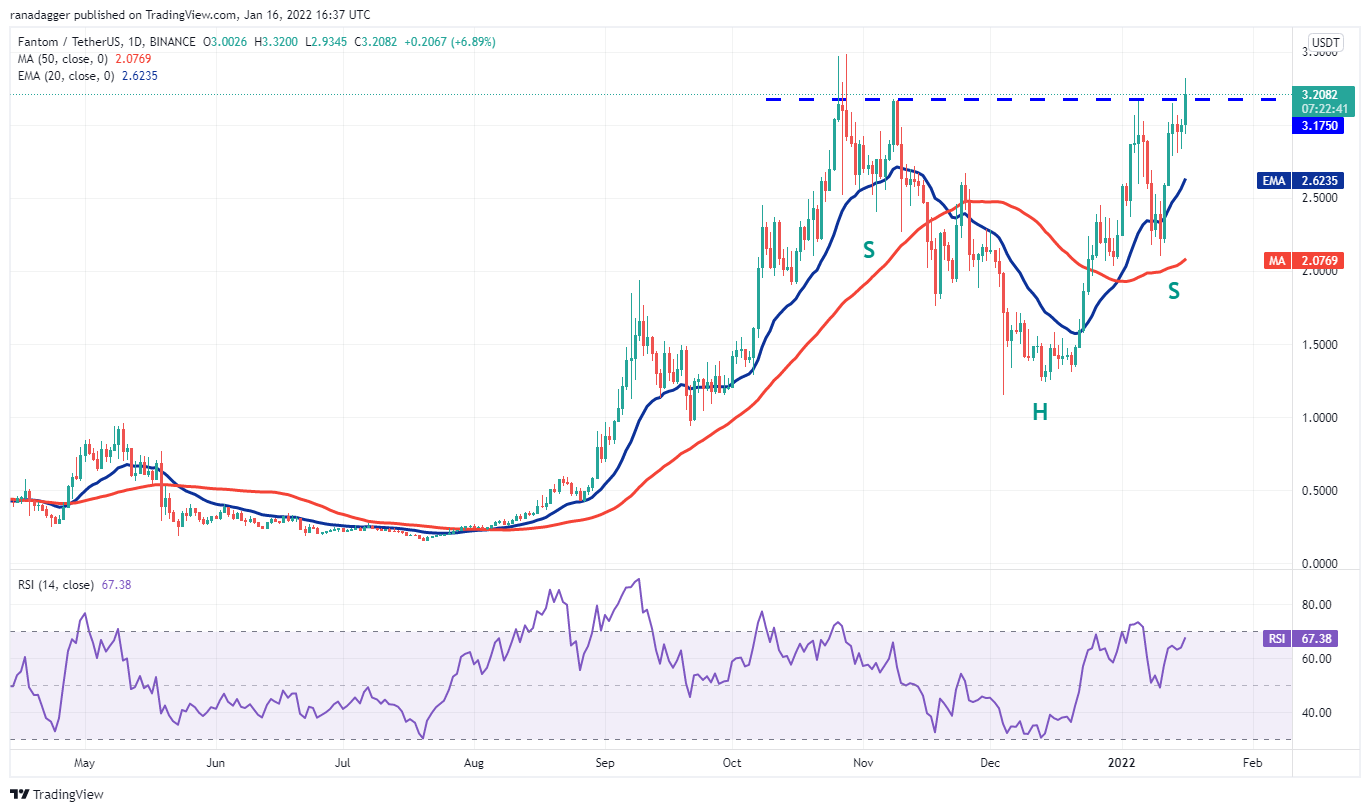 Fantom (FTM) در یک روند صعودی سنگین است. قیمت چند روز گذشته یک سر و شانه معکوس (IH&S) را تشکیل داده است که با شکست کامل می شود و بالای 3.17 دلار بسته می شود.