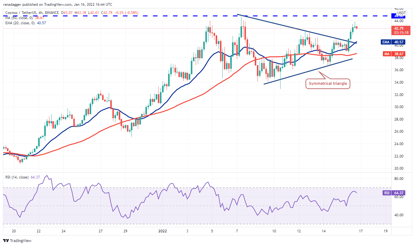 از طرف دیگر، اگر قیمت از مقاومت سربار کاهش یابد، جفت ارز ATOM/USDT می تواند تا میانگین متحرک نمایی 20 روزه (36 دلار) کاهش یابد. این یک سطح کلیدی برای دفاع گاوها است. اگر قیمت از این سطح بازگردد، گاوها دوباره تلاش خواهند کرد تا جفت ارز را به بالای مقاومت سربار بکشانند و روند صعودی را از سر بگیرند.